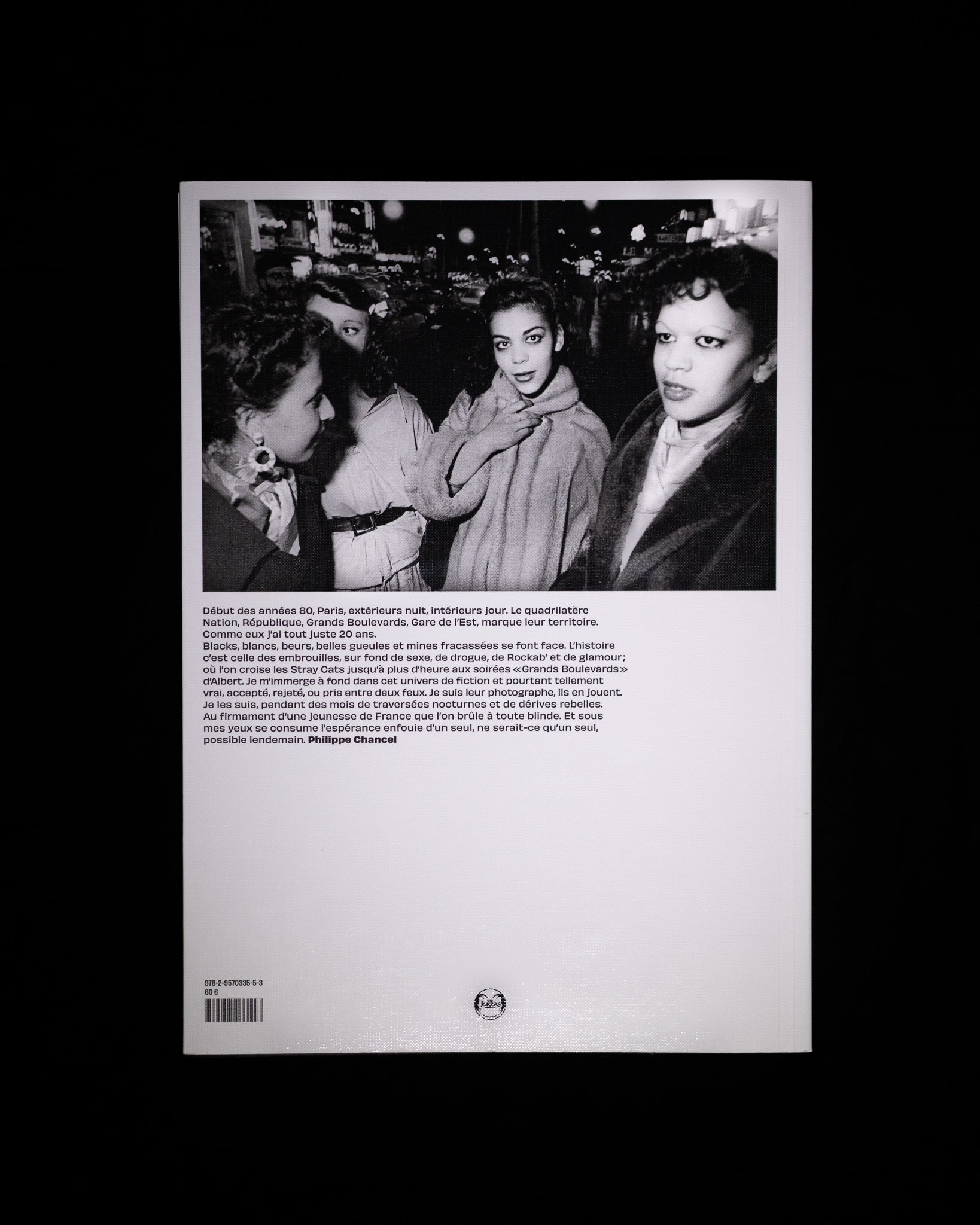 La France des années 80 c’est aussi et surtout celle de ce livre. La fameuse petite Histoire de France, celle dont on parlait peu ou pas dans les journaux. Le Front National démarrait son ascension qui l’a amené cette année à 42% aux élections présidentielles, les violences policières était au moins aussi prégnantes qu’en 2022, mais à cette époque on aimait avoir du style et l’assumer. C’est cette France-là qui s’exprime à travers les photographies de Philippe Chancel. La nuit, tous les chats n’étaient pas gris, ils étaient blacks, blancs, beurs et fiers de l’être.
